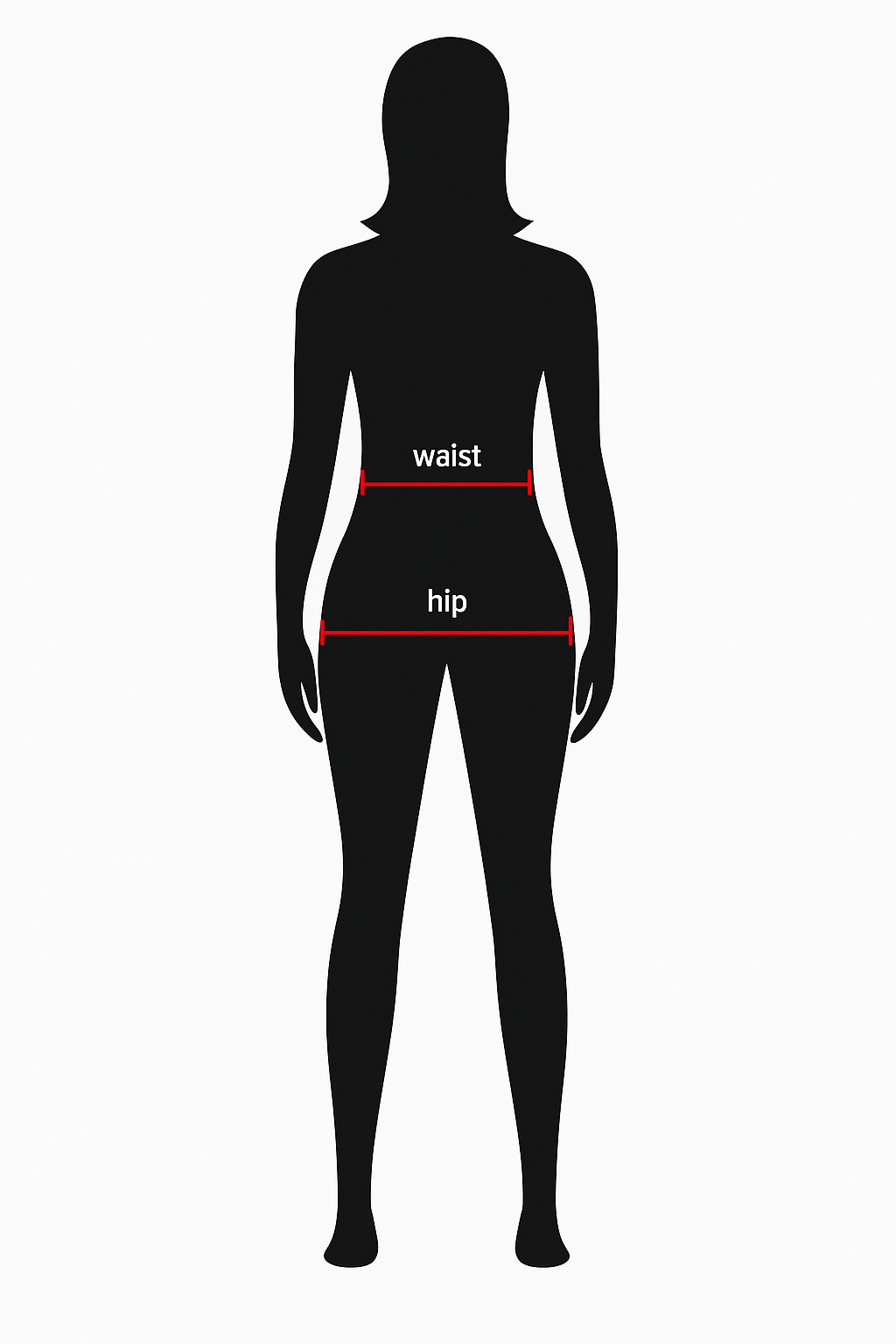 | Size | Waist (cm) measured at the smallest part | Hip (cm) measured at the widest part |
